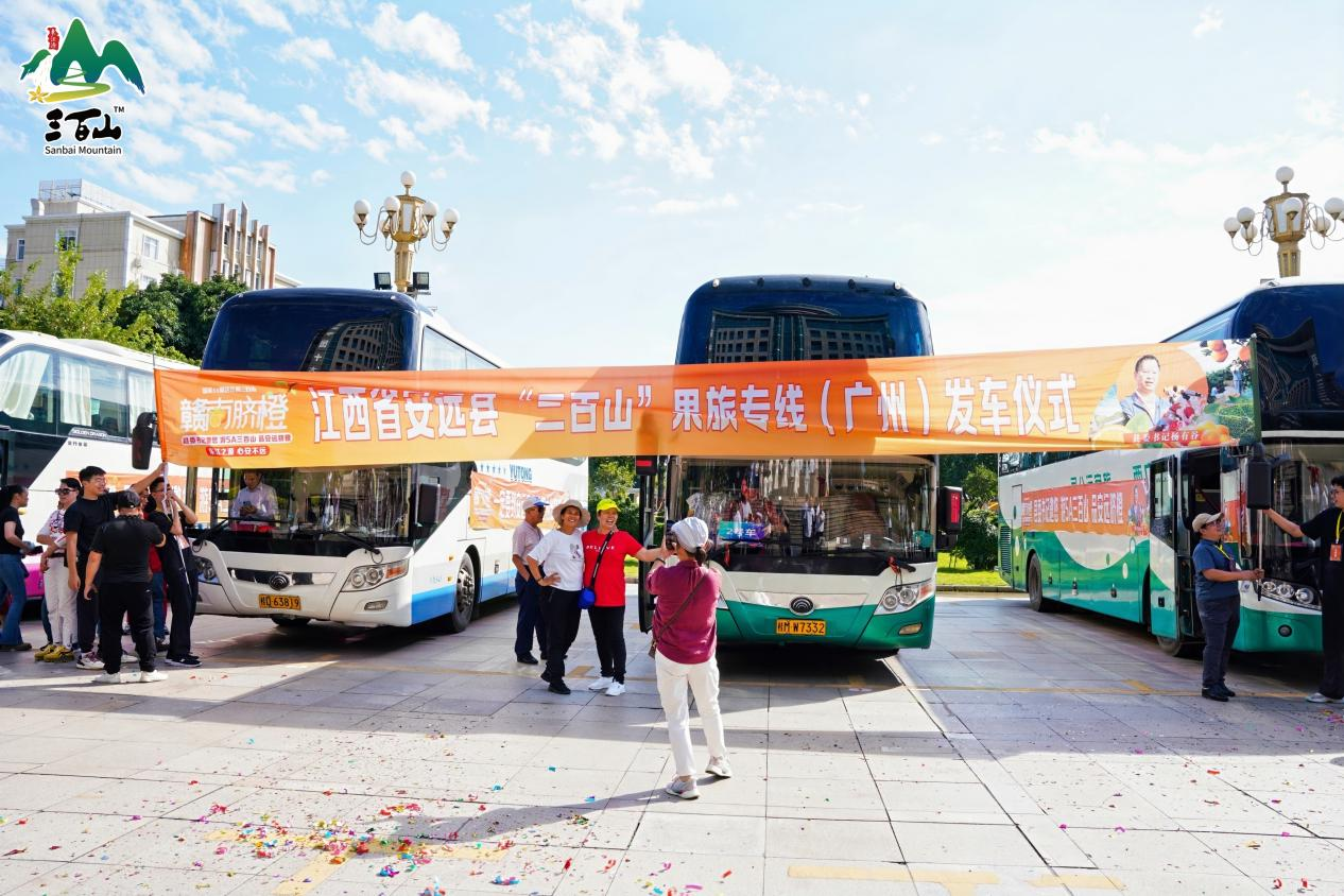 活动当天,安远“三百山”赣南脐橙营销暨果旅融合旅游专线正式发车,满载游客的7辆大巴车将驶向安远县三百山景区、客家围屋群等地旅游观光,让乘客全方位感受安远的独特魅力。
